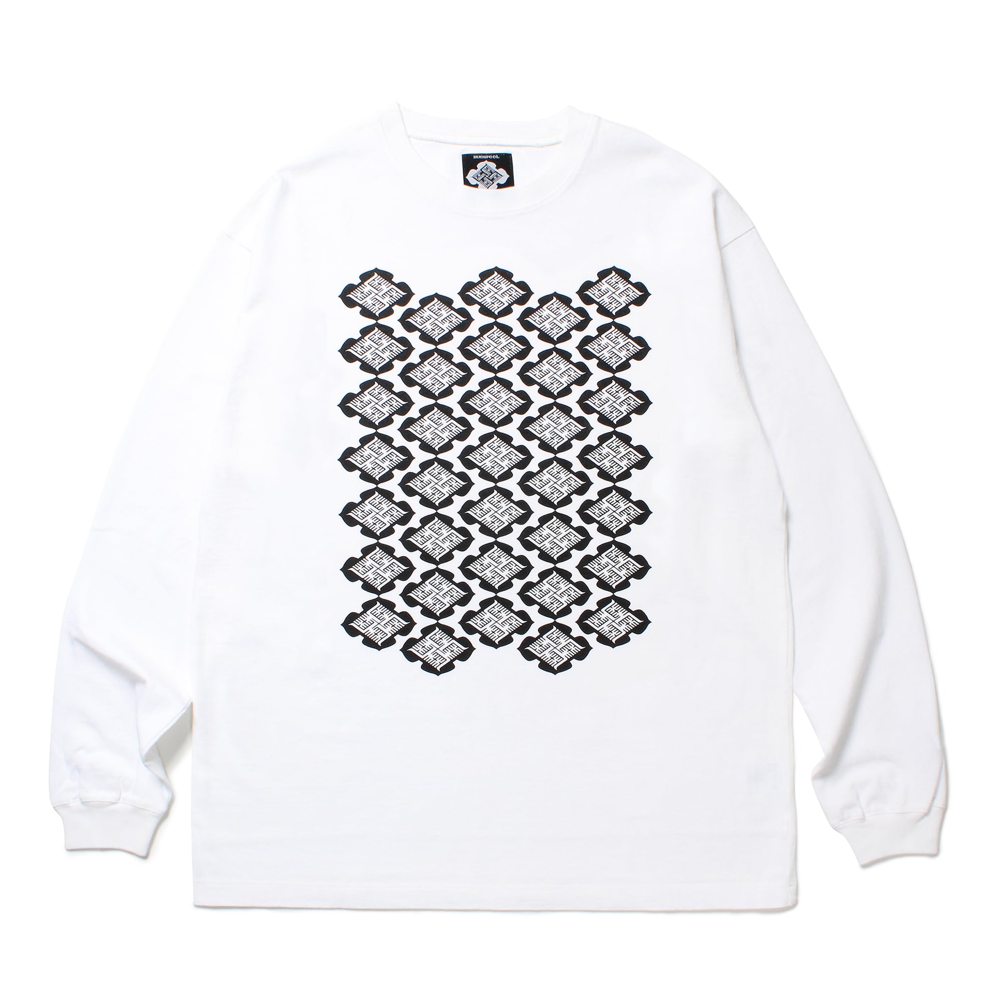 花罰家紋パターンをプリントしたロングスリーブTシャツ。