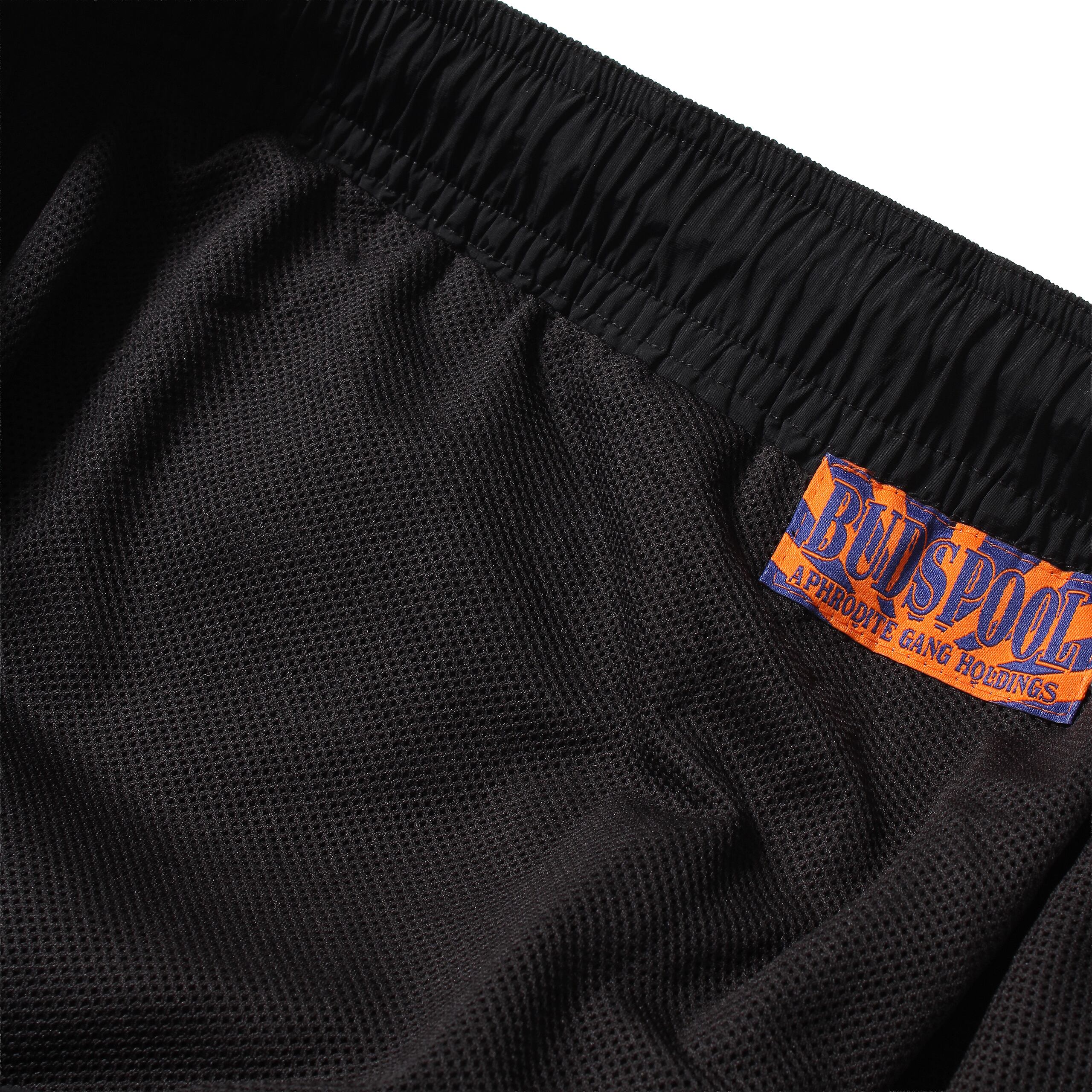 ウエストは紐で調節が可能です。紐先のアグレットにBUDSPOOLのプリント入り。