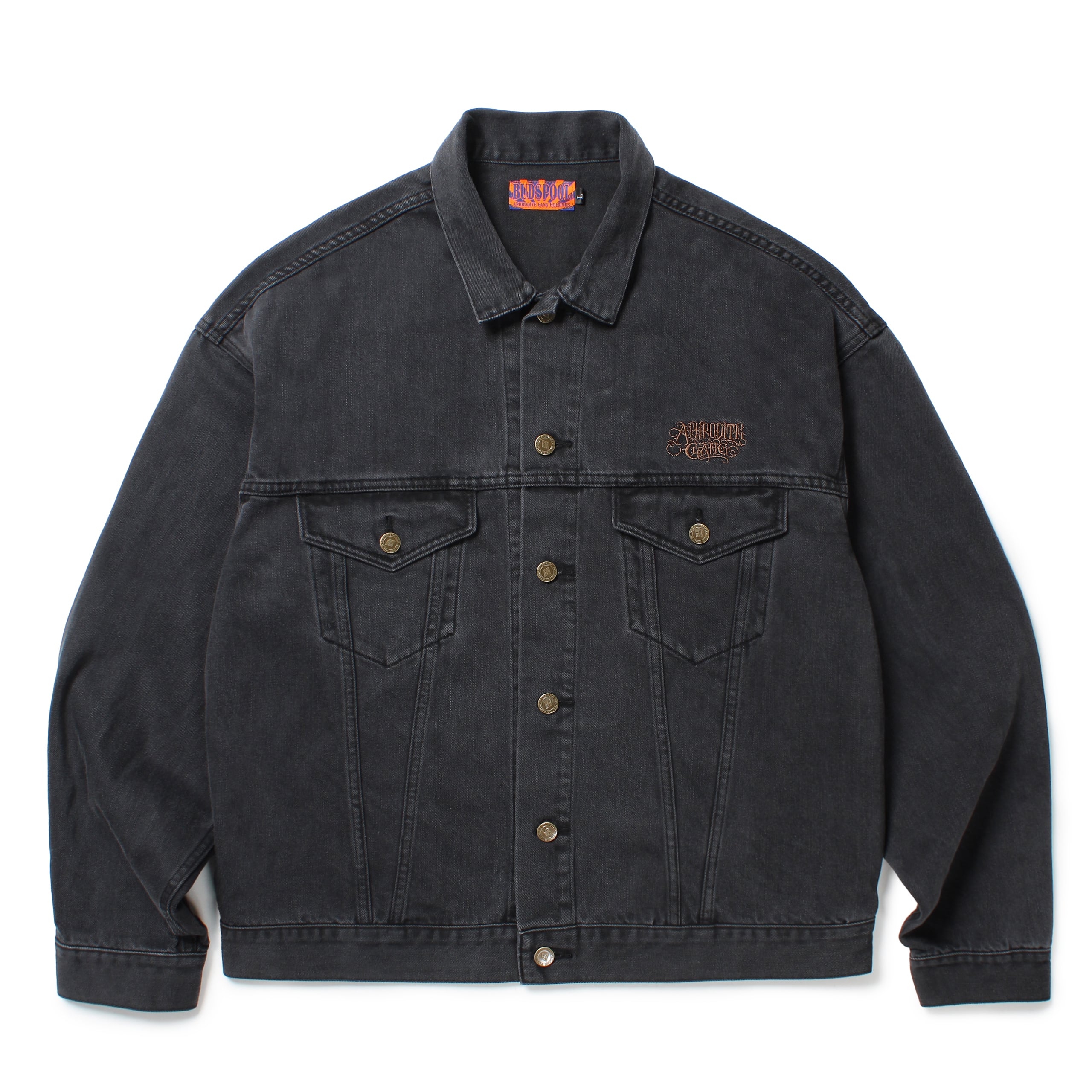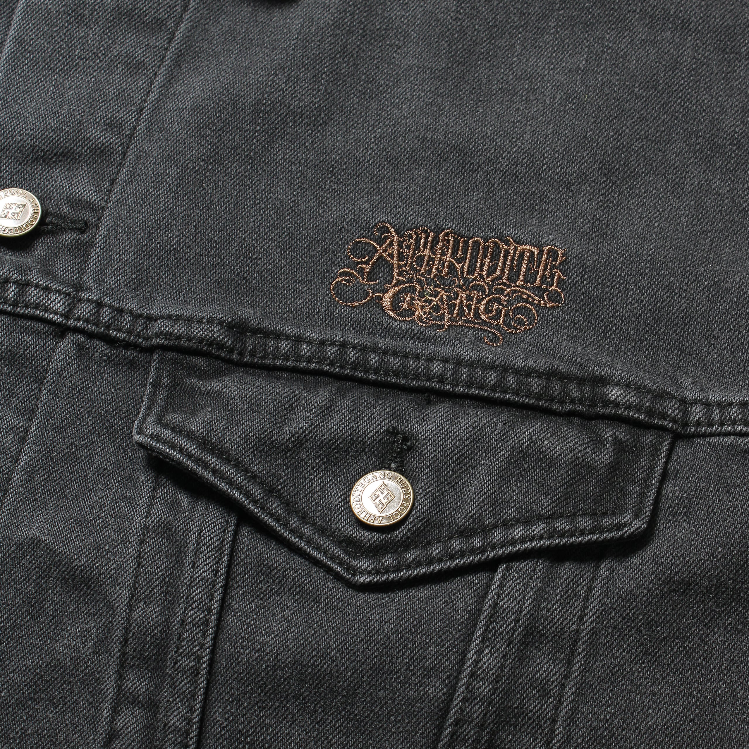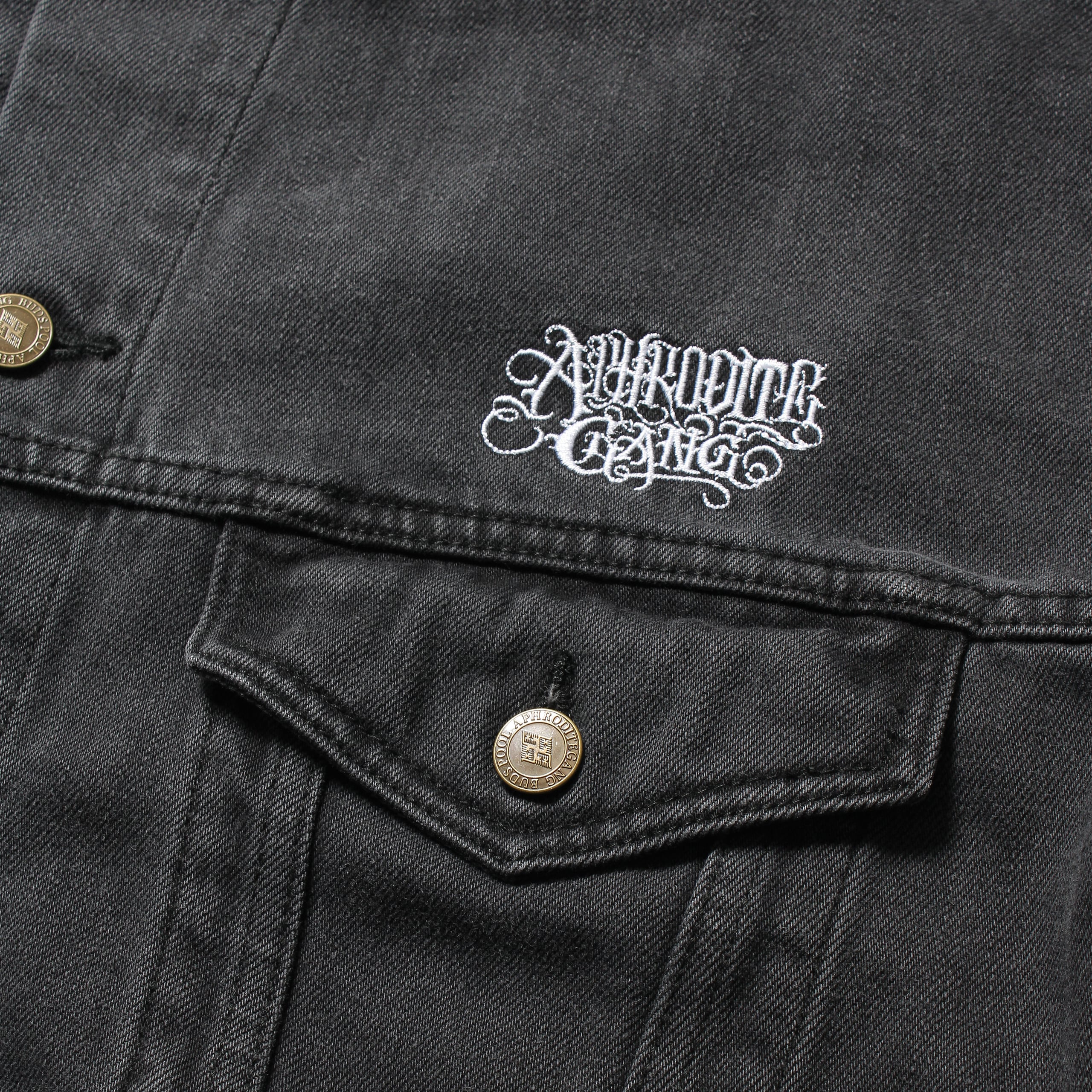 ウォッシュド加工を施したブラックデニムのデニムトラッカージャケット。