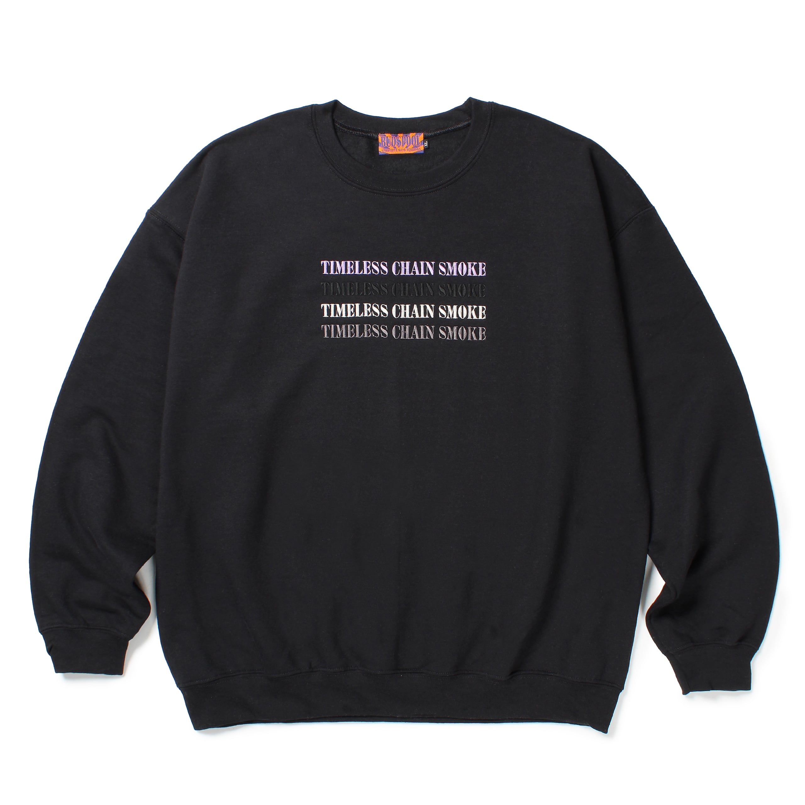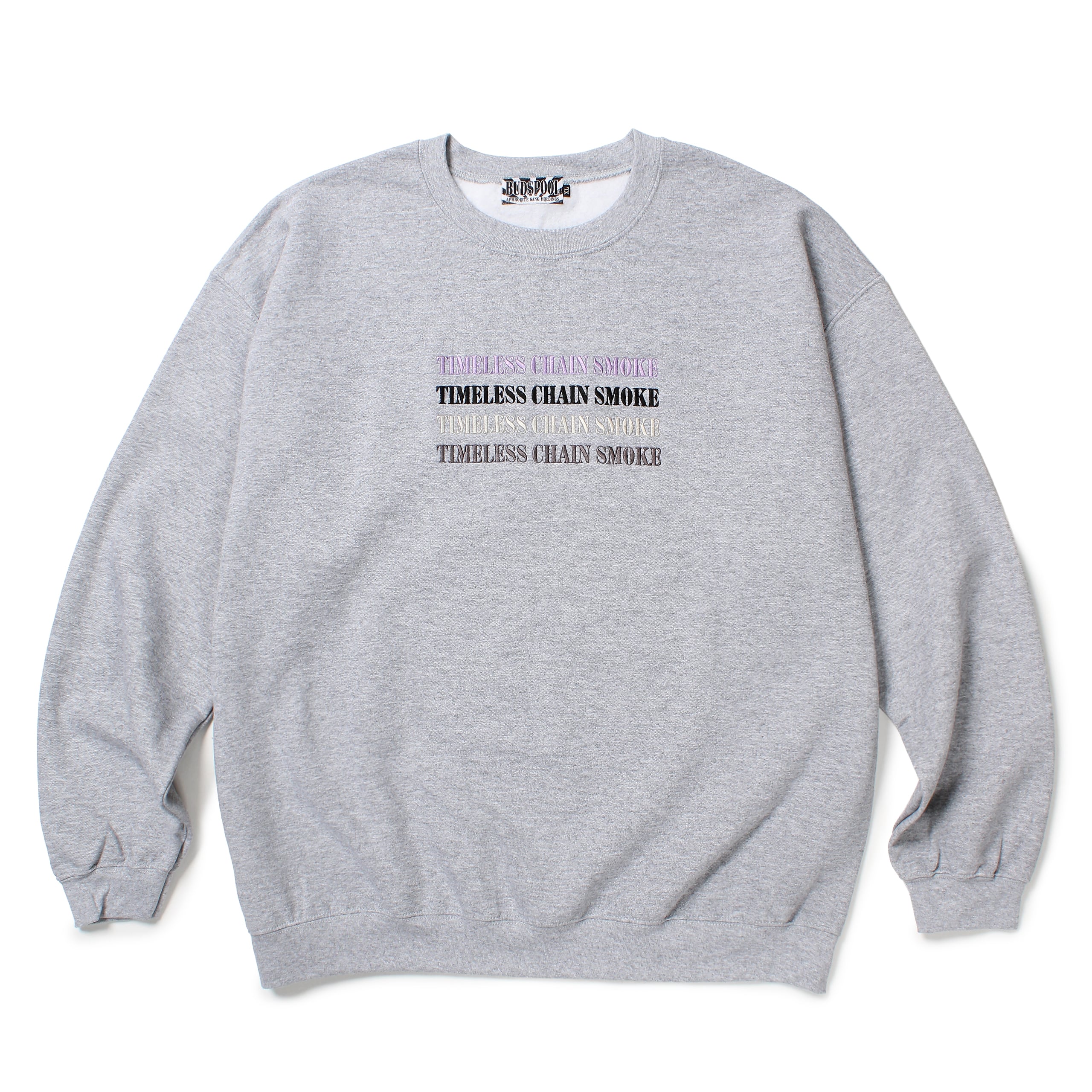 胸にTCSロゴの4連刺繍が入ったクルーネックスウェットシャツ。