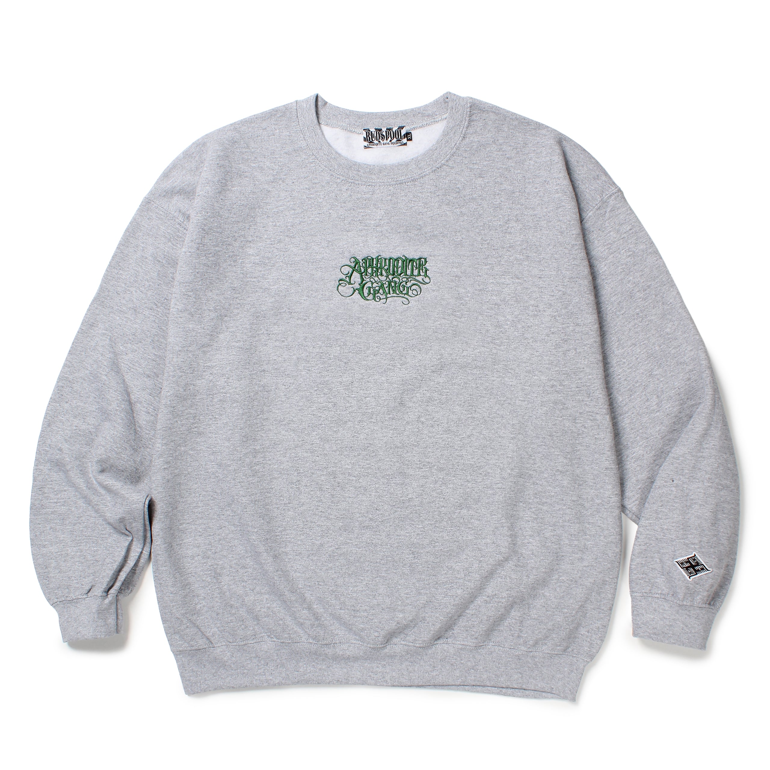 胸にクラシックロゴ刺繍がクルーネックスウェットシャツ。