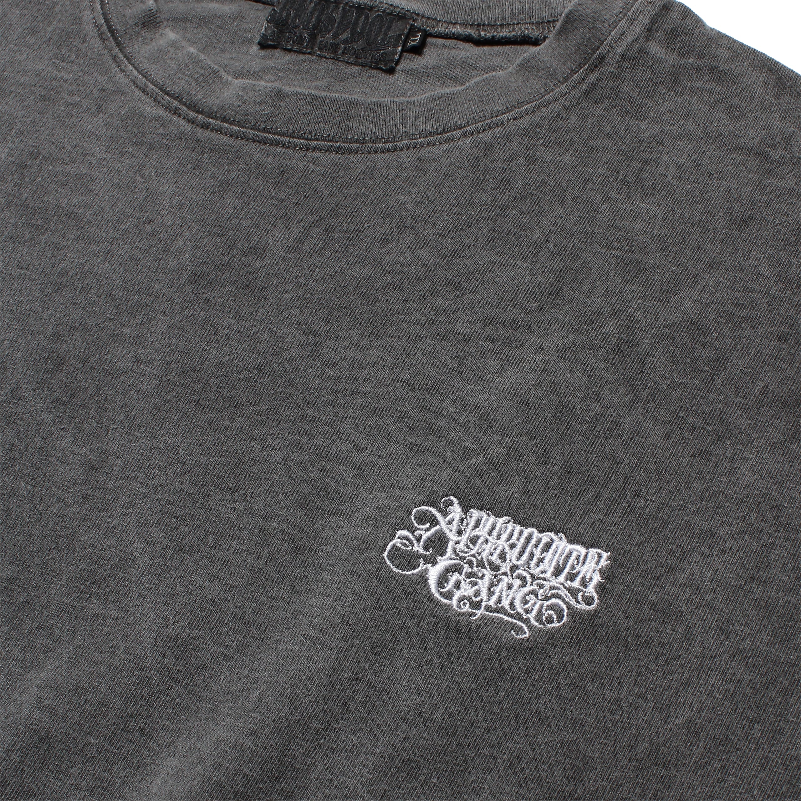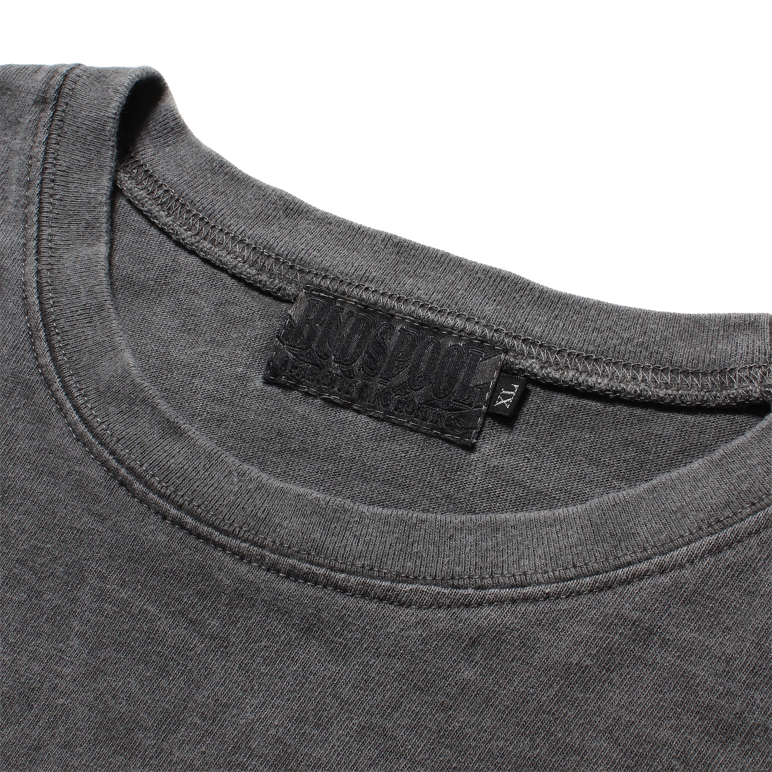 バッスプールのオリジナルボディーにガーメントダイ(製品染め)を施したロングスリーブTシャツ。