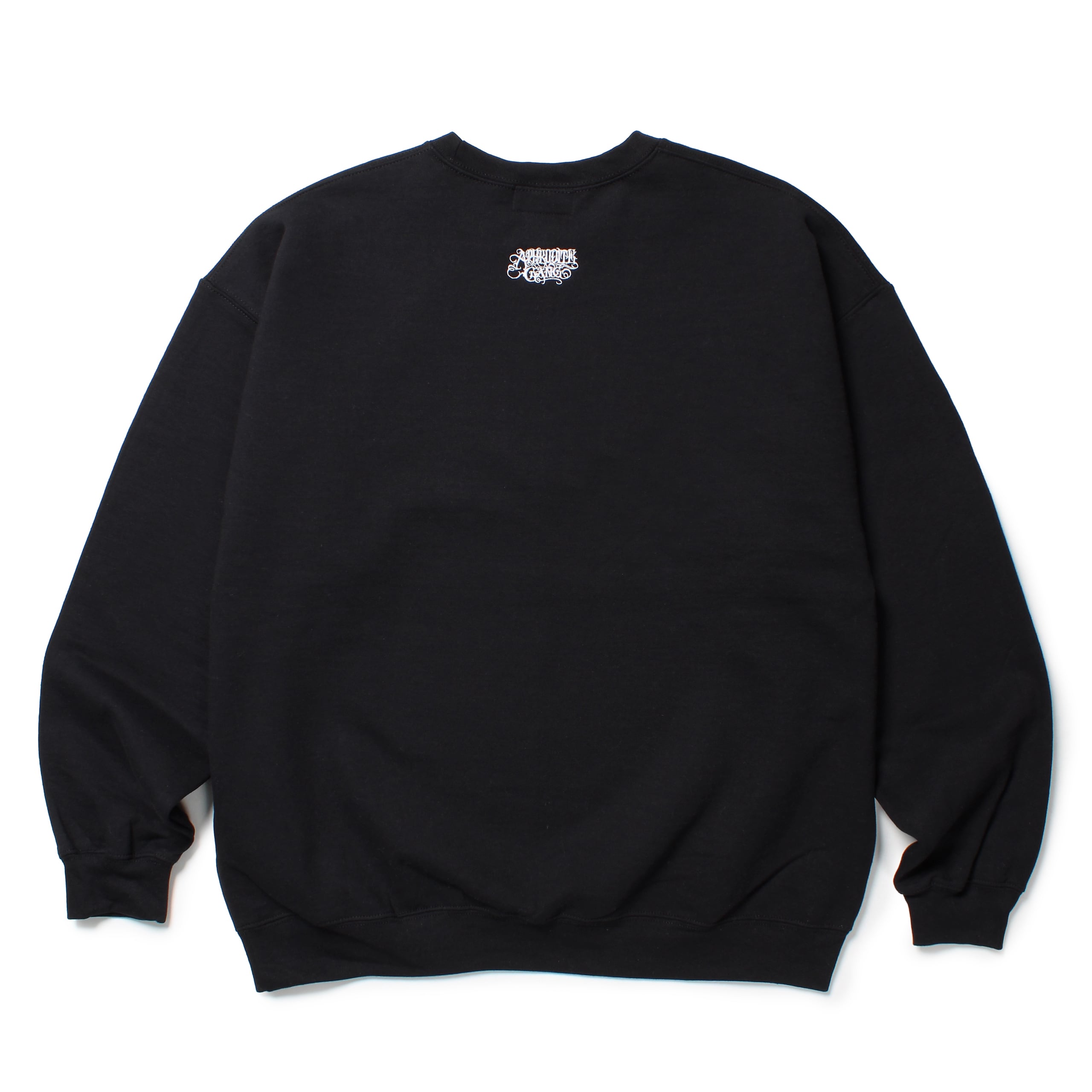 フロントにAPHRODITEGANG HOLDINGSのプリント、バックにクラシックロゴ刺繍が入ったクルーネックスウェットシャツ。