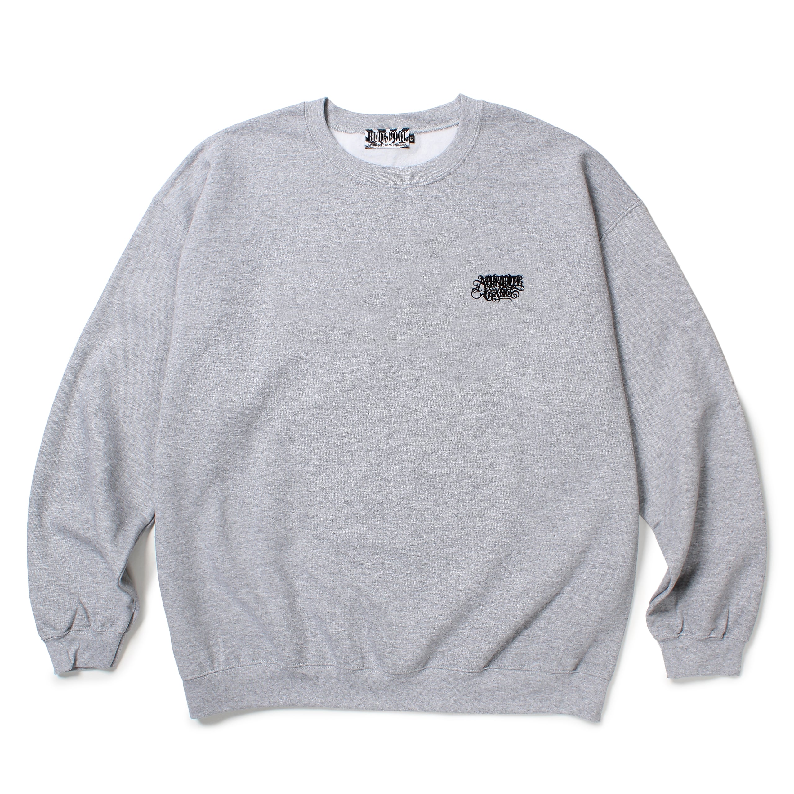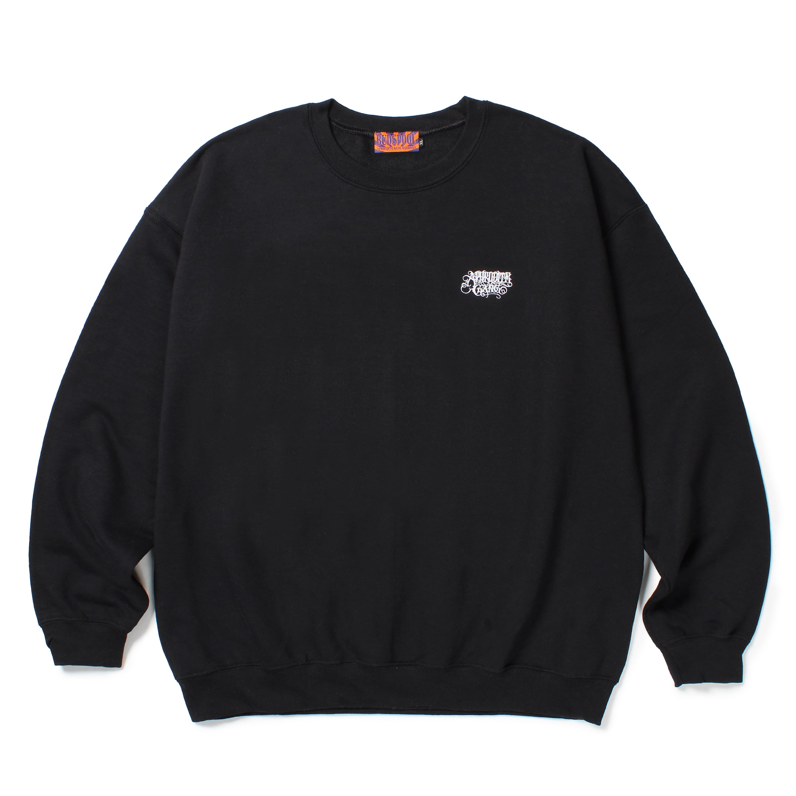 左胸にクラシックロゴ刺繍、バックにBUDSPOOLのプリントが入ったクルーネックスウェットシャツ。