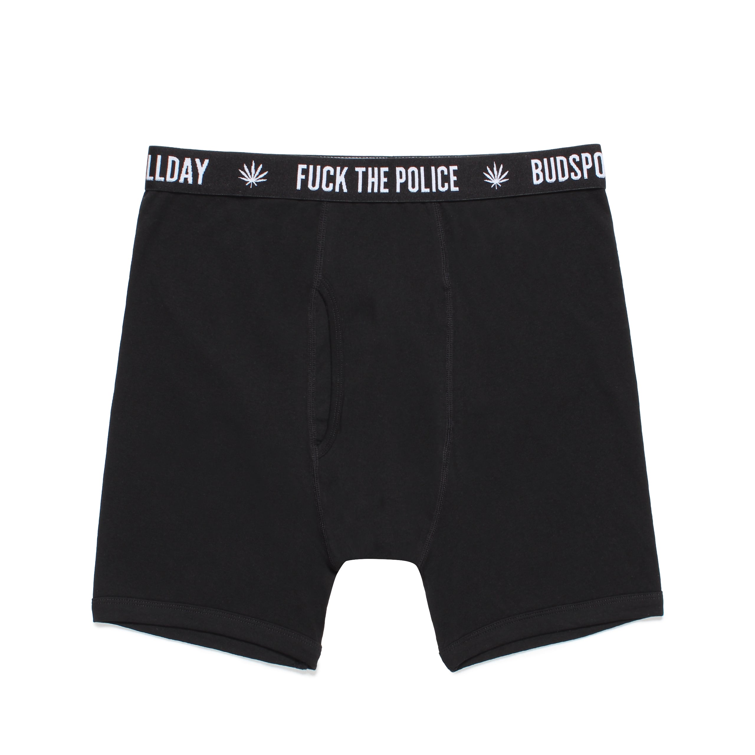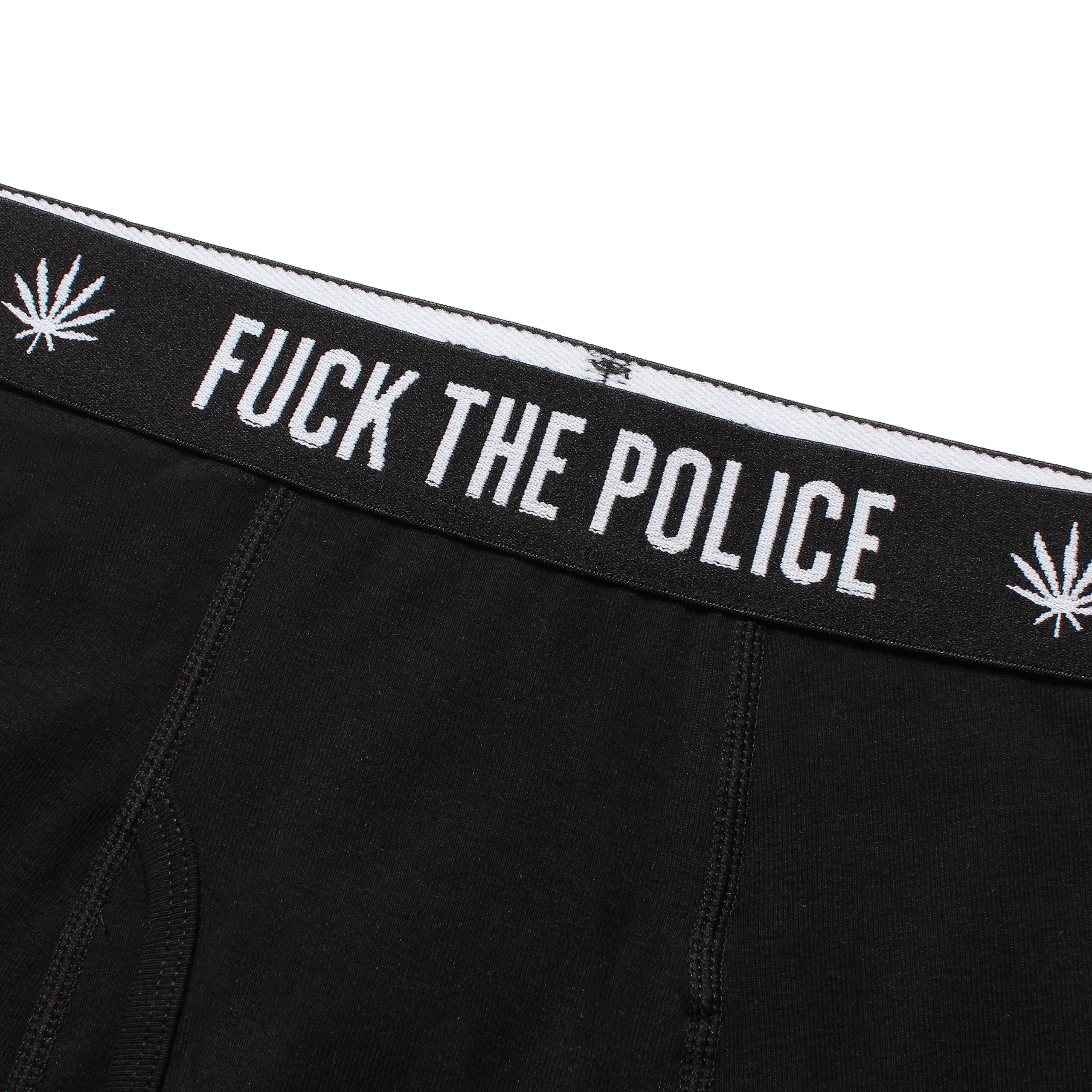 FUCK THE POLICE、APHRODITE GANGの2種類のロゴ入りウエストバンドを使用したボクサーパンツ。