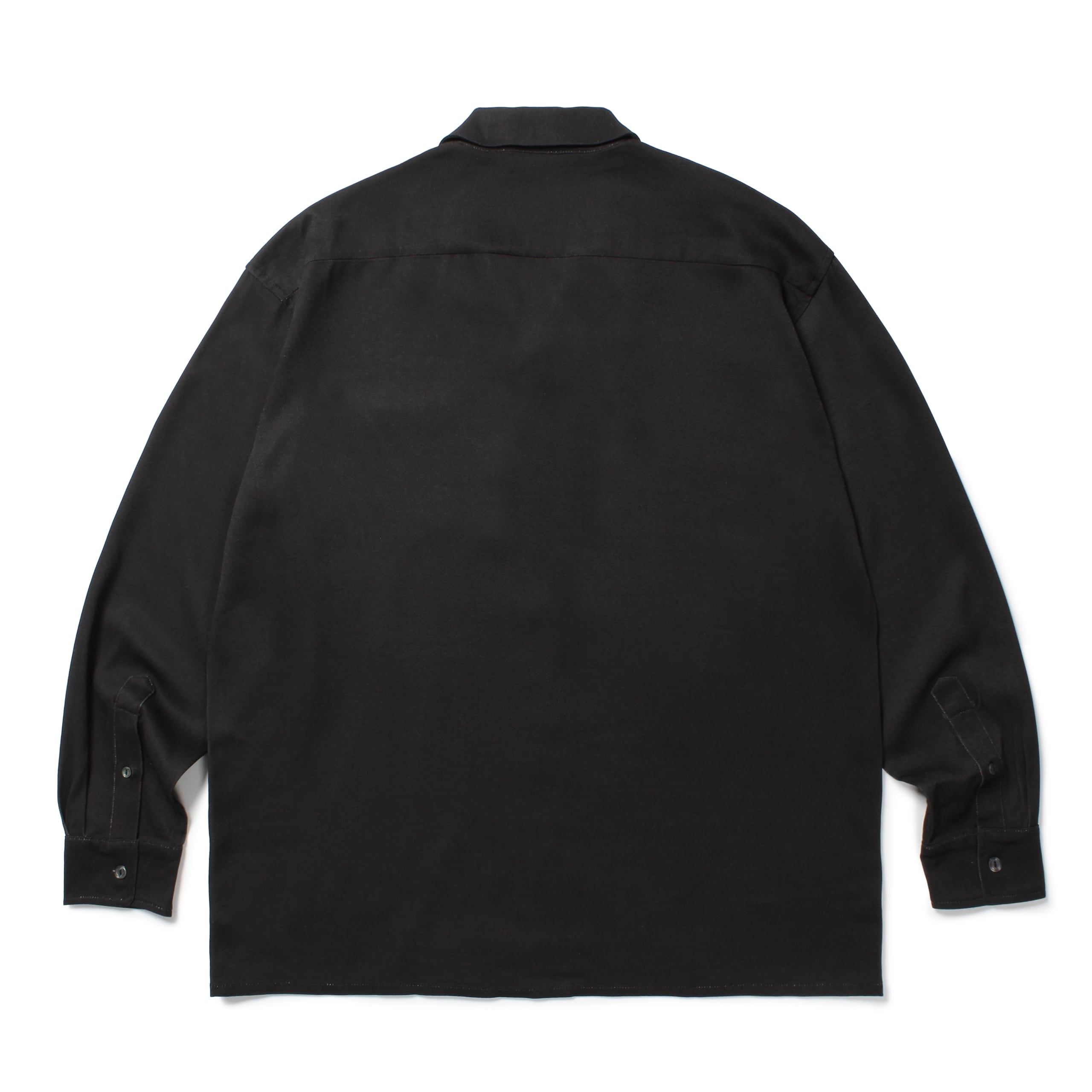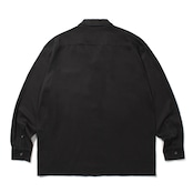総柄プリントのレーヨン生地を使用した長袖オープンカラーシャツ。