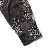 総柄プリントのレーヨン生地を使用した長袖オープンカラーシャツ。