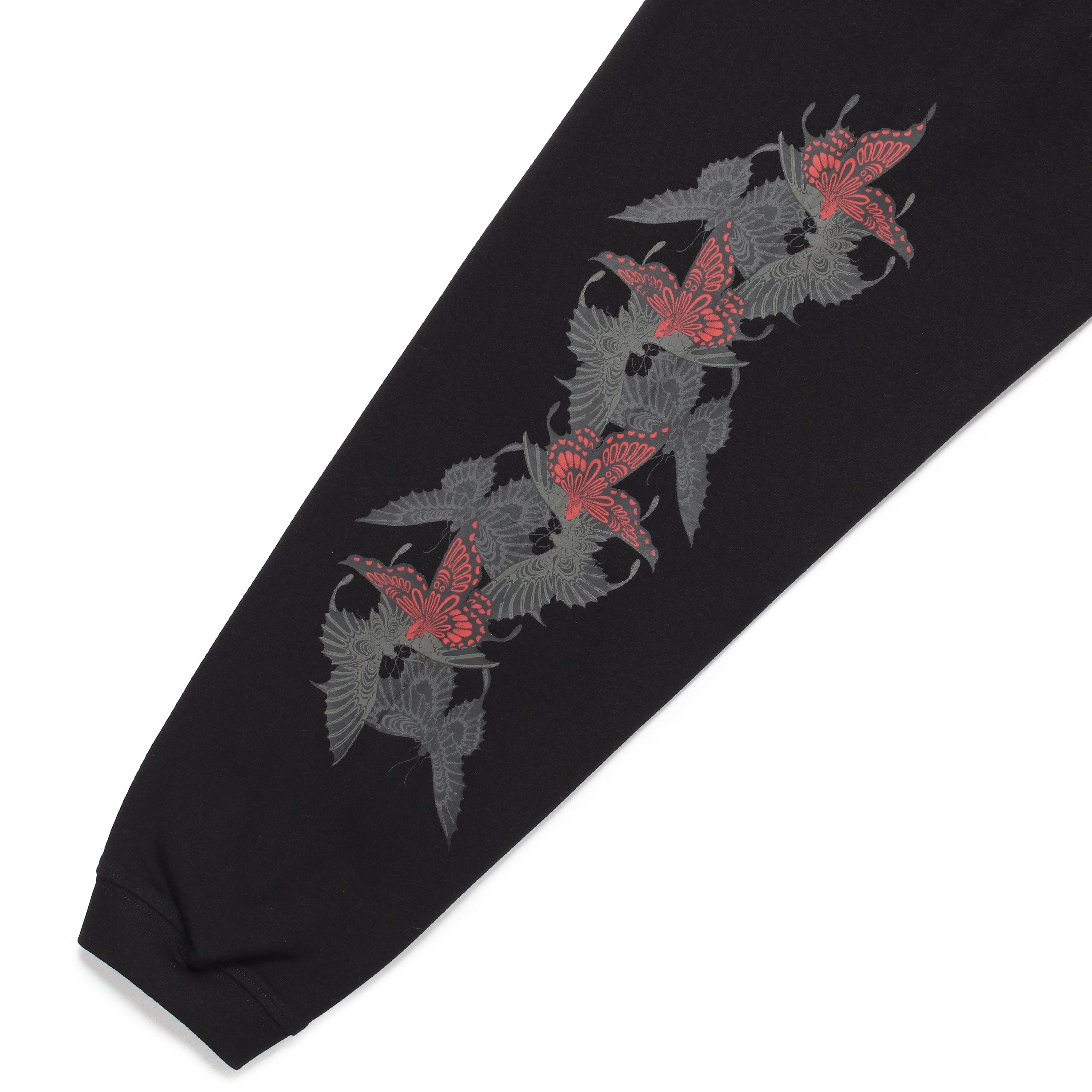 三艶蝶を両袖にプリントしたロングスリーブTシャツ。
