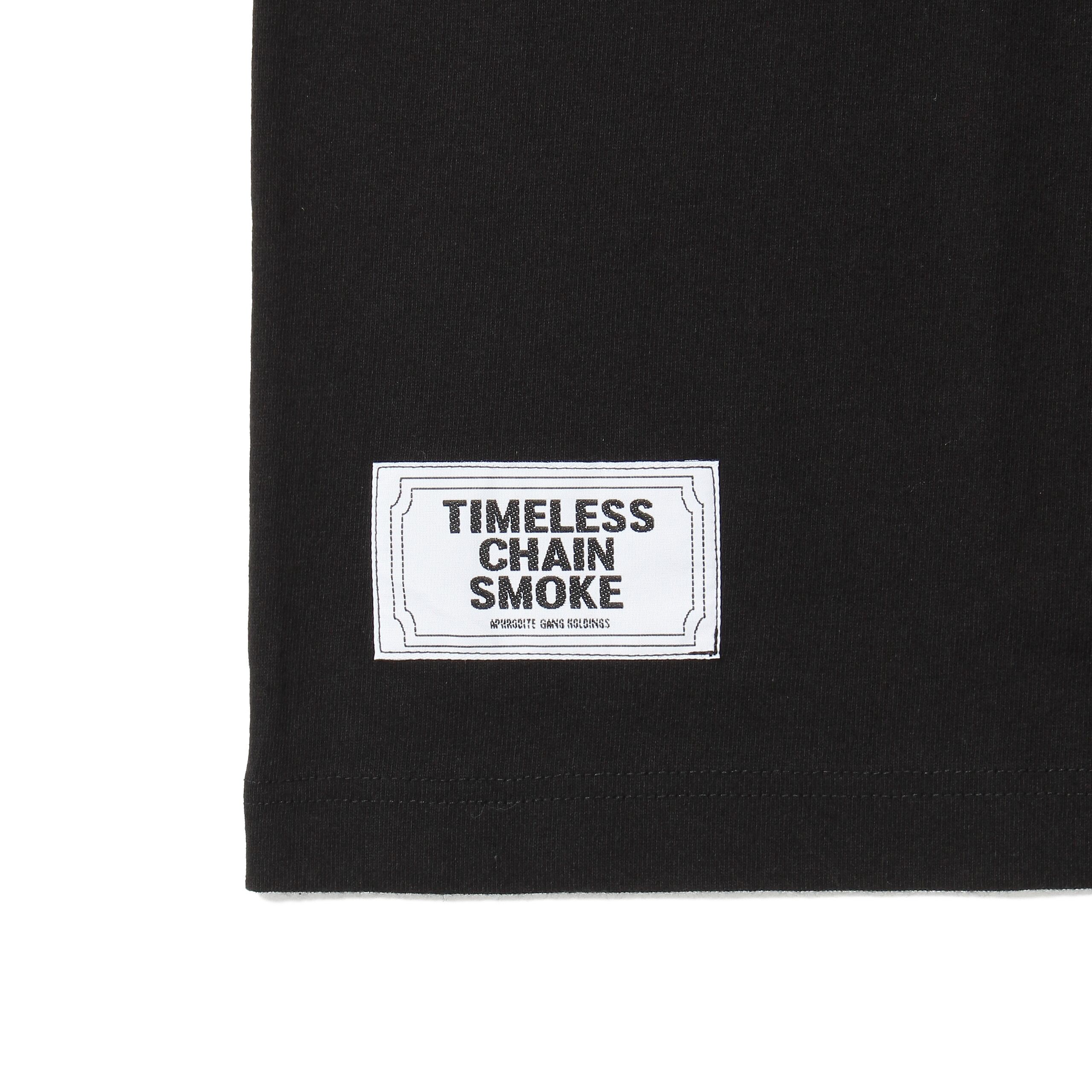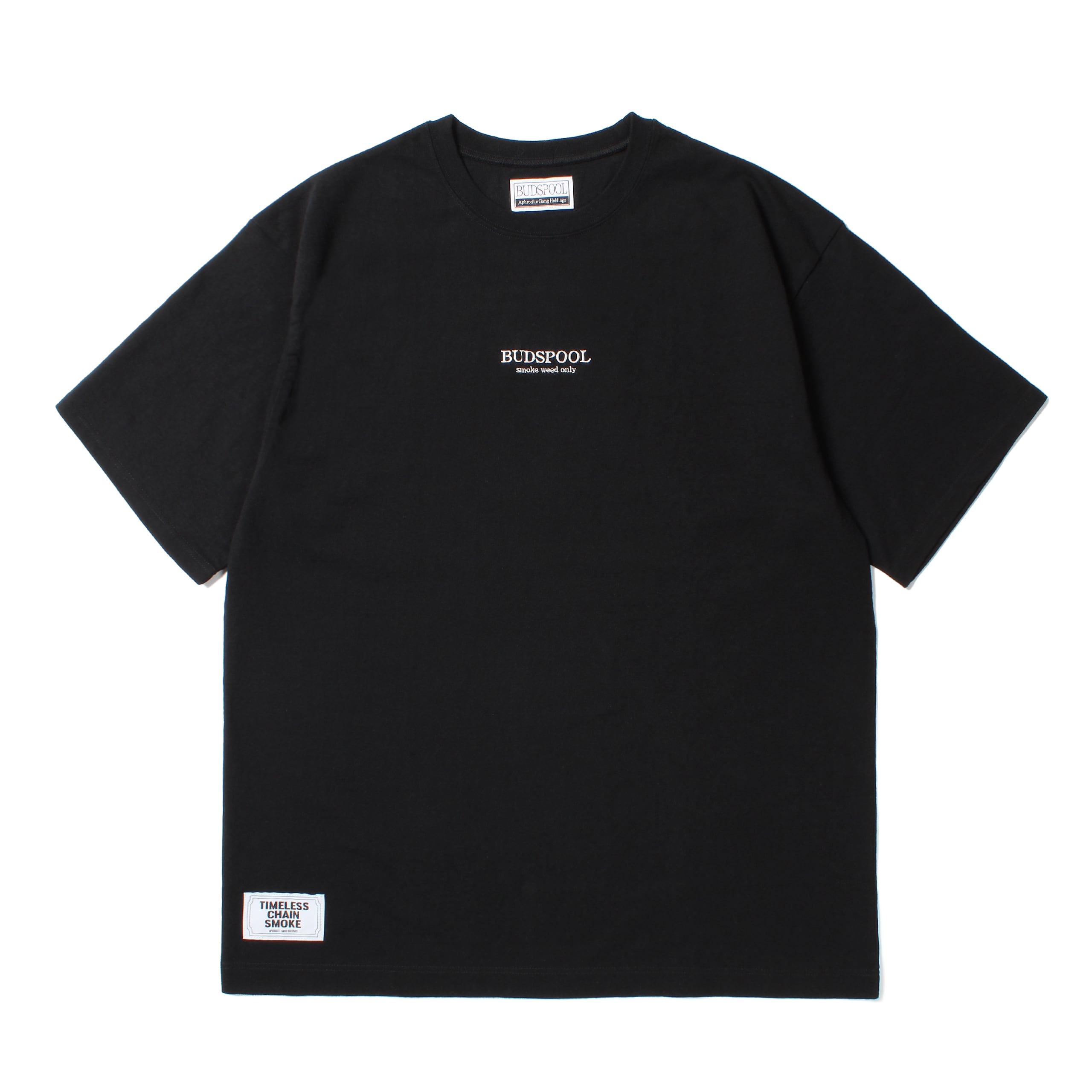 フロントに刺繍、バックにプリントが入ったショートスリーブTシャツ。