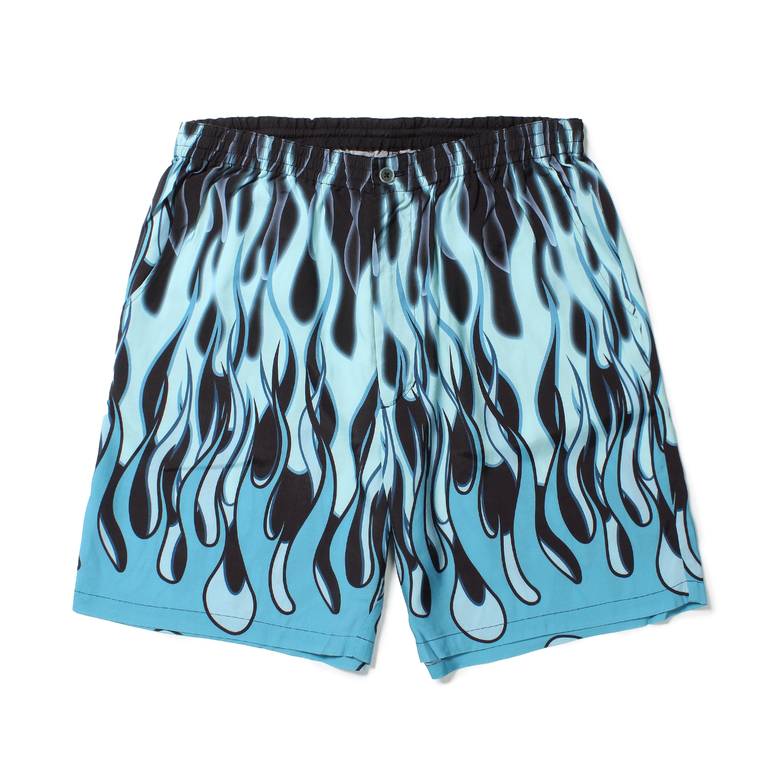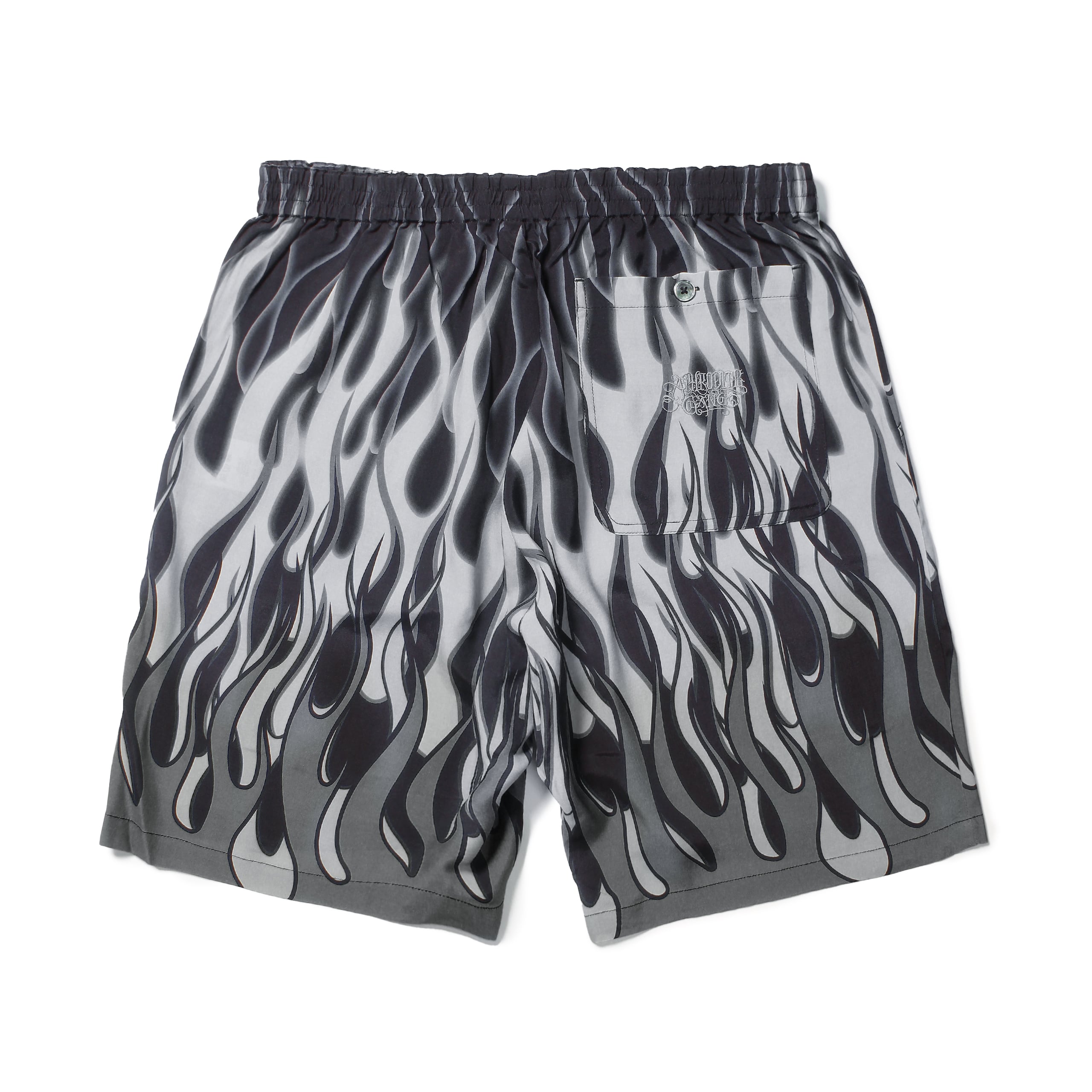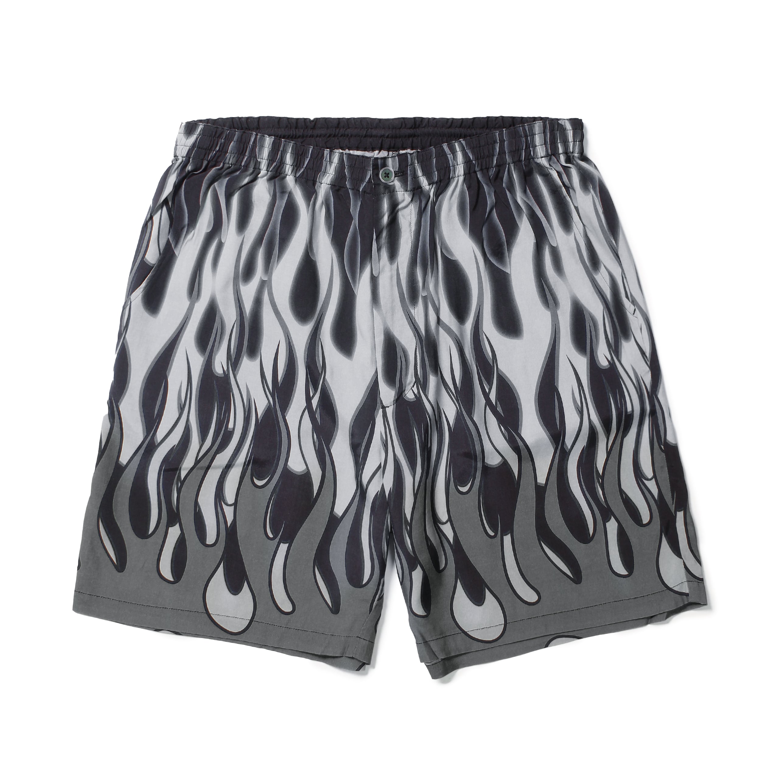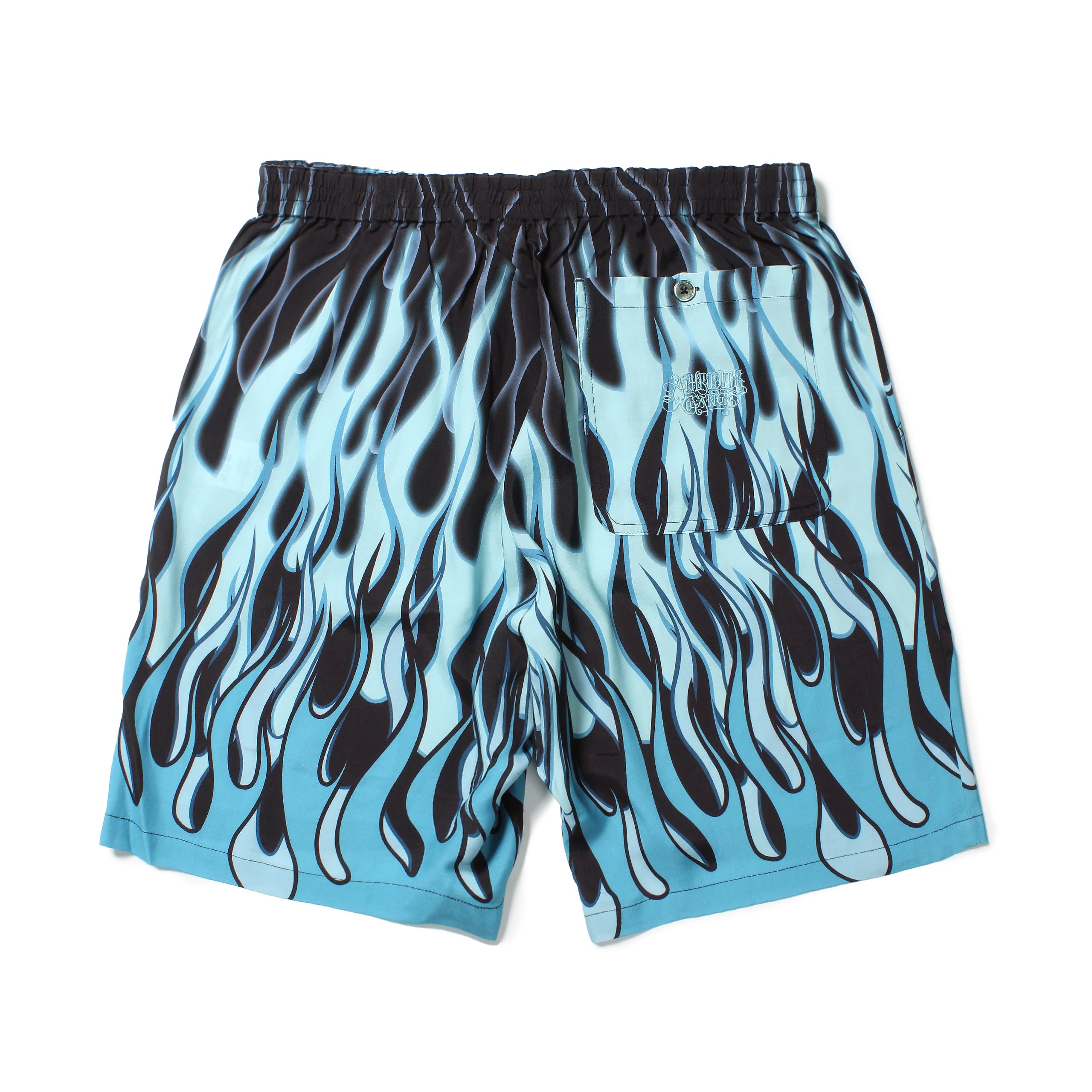 BUDSPOOLオリジナルのファイヤーパターンをレーヨン生地にプリントした総柄ショーツ。