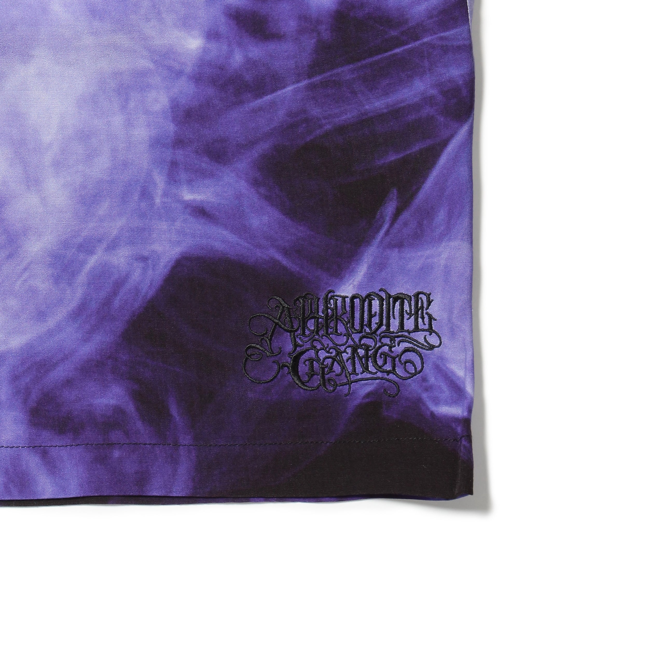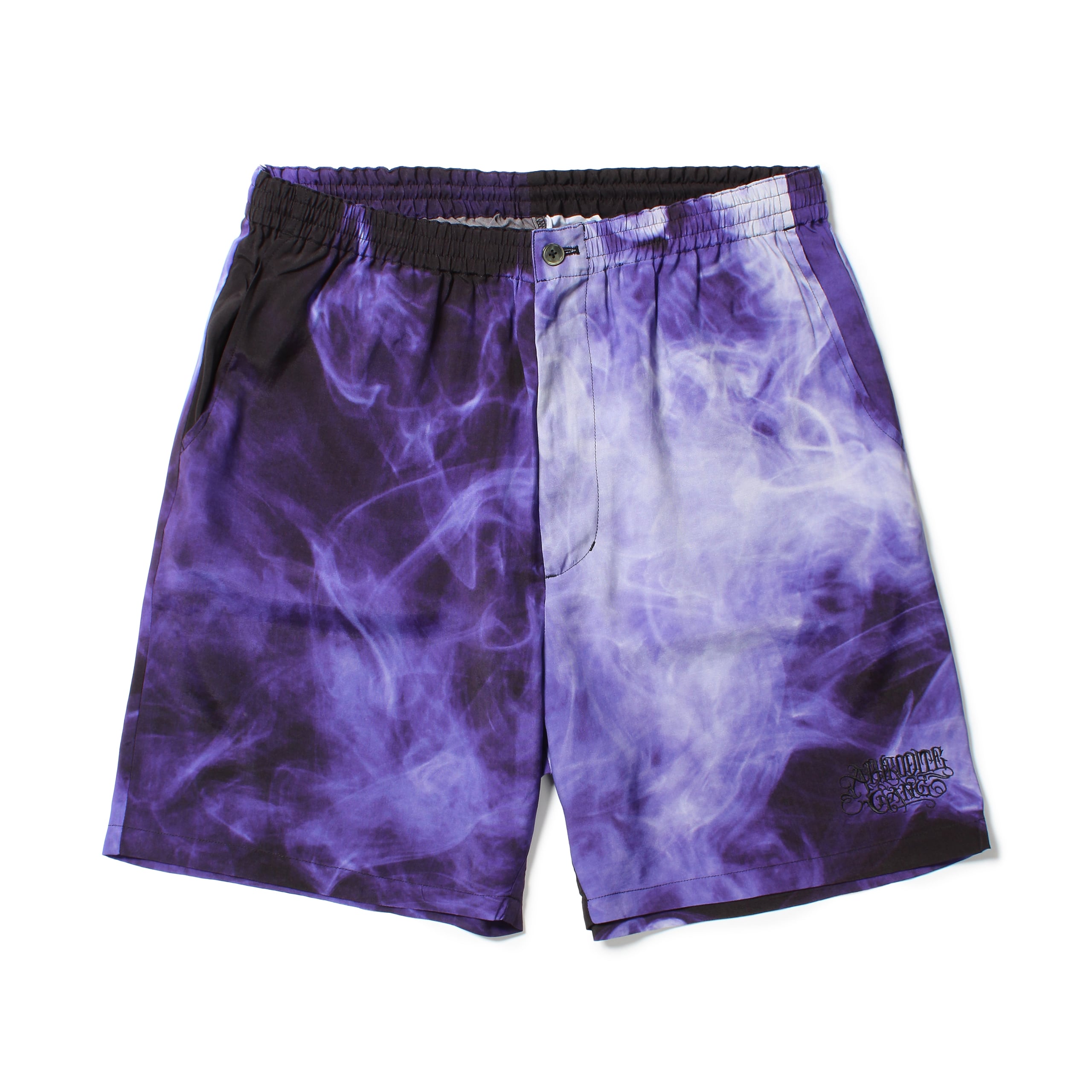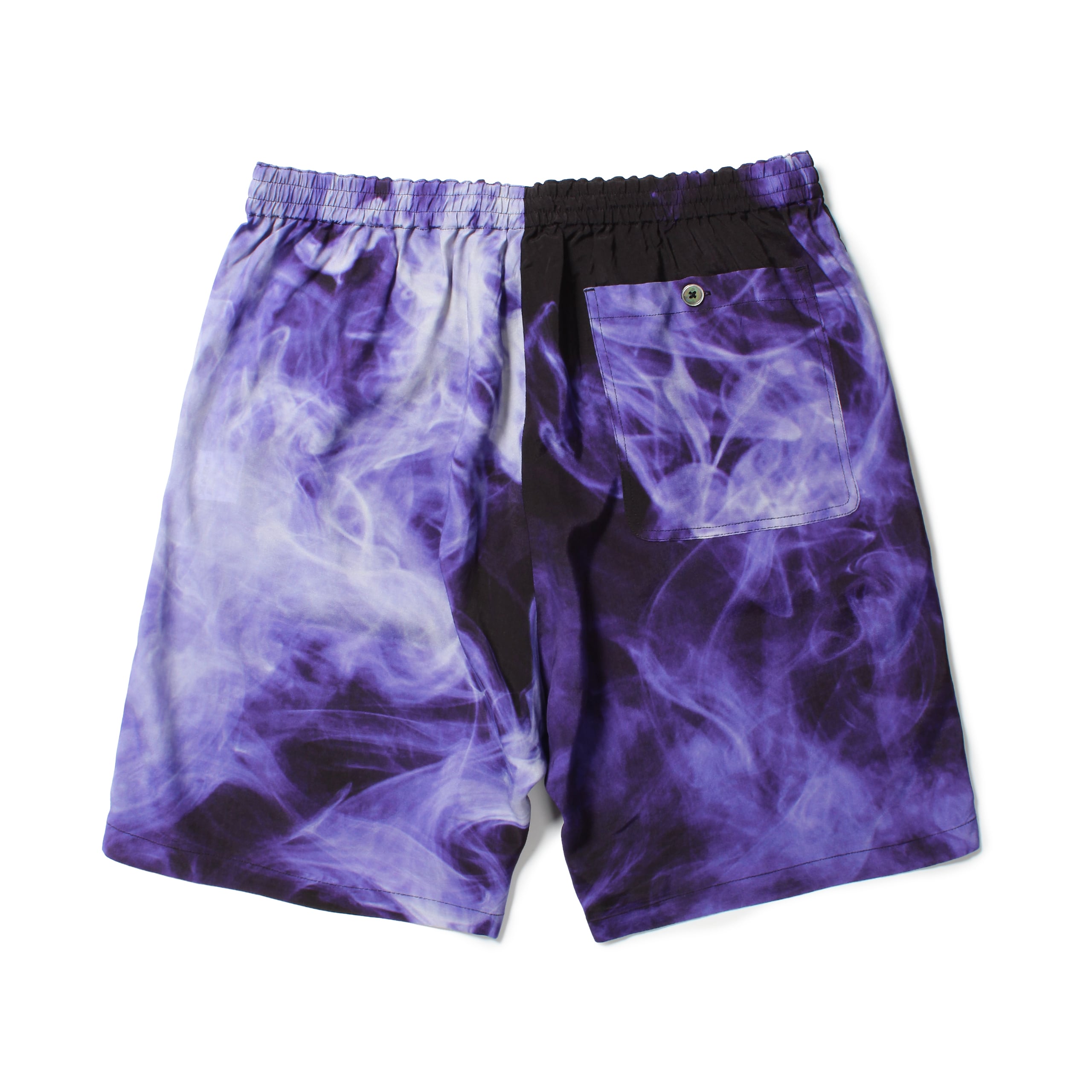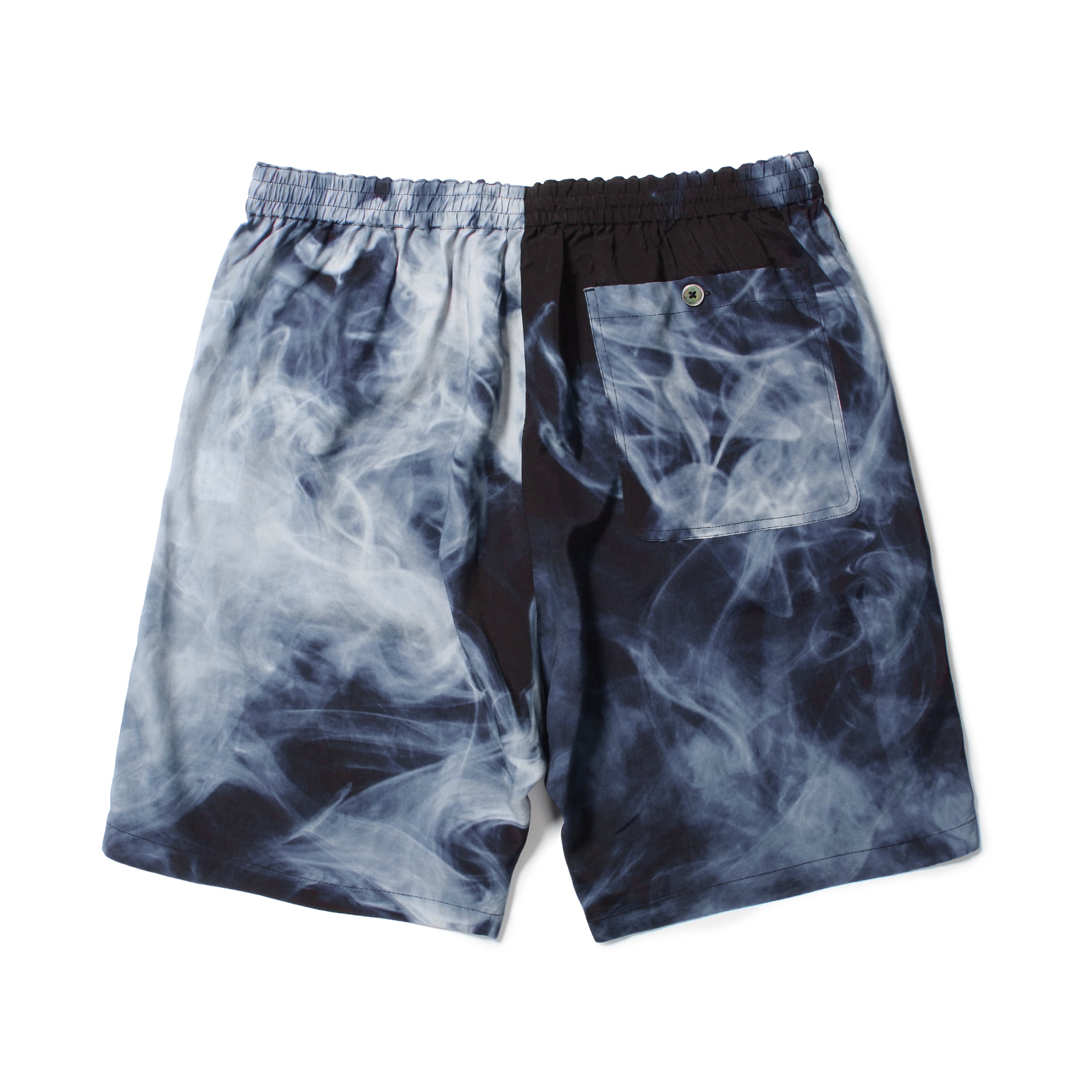 BUDSPOOLオリジナルのスモークパターンパターンをレーヨン生地にプリントした総柄ショーツ。
