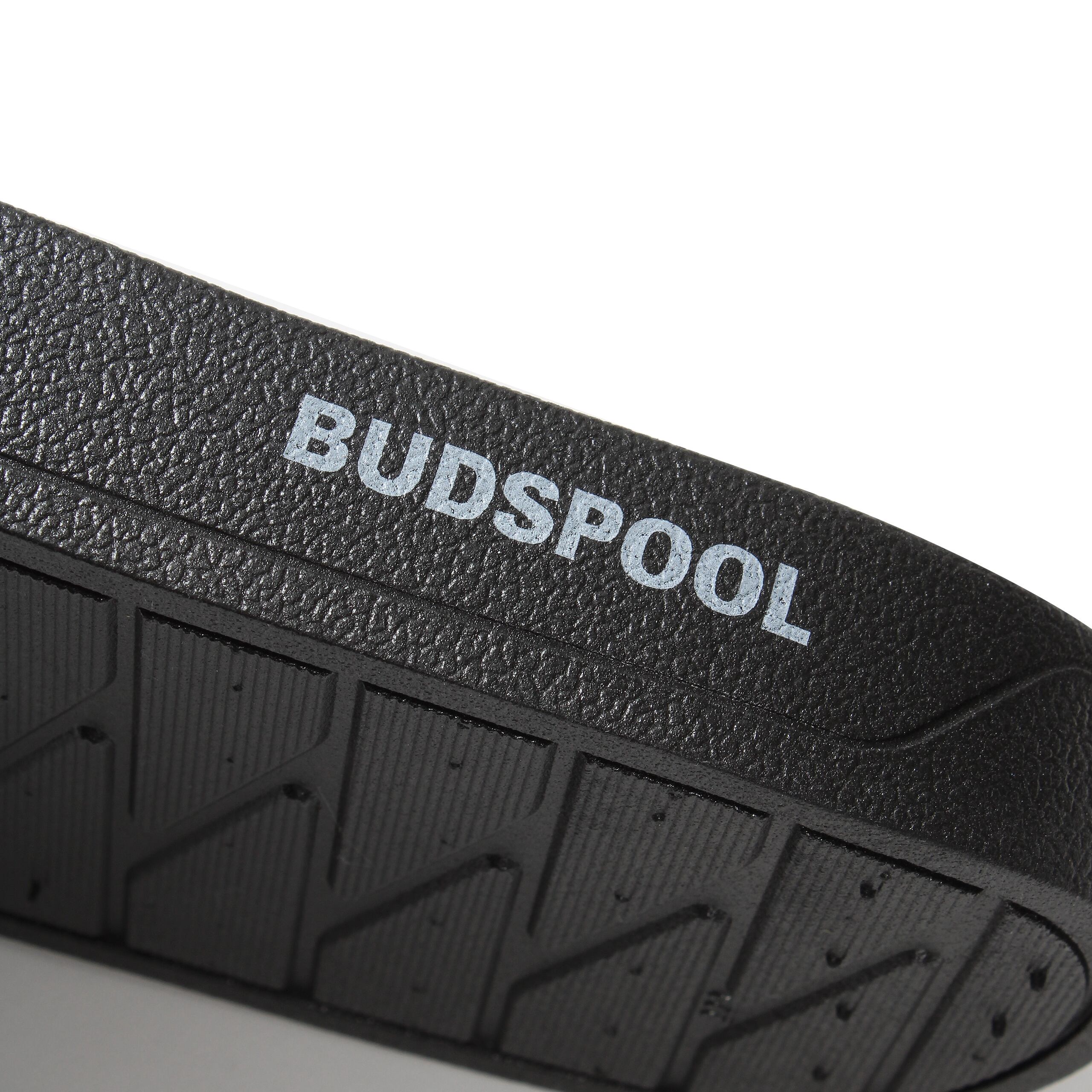 アッパー部分にクラシックロゴ、ヒールにBUDSPOOLのロゴが入ったシャワーサンダル。